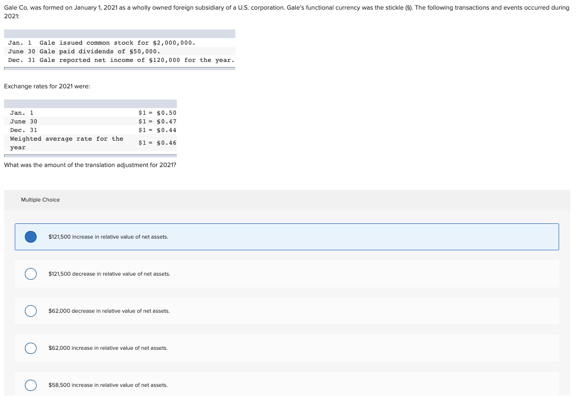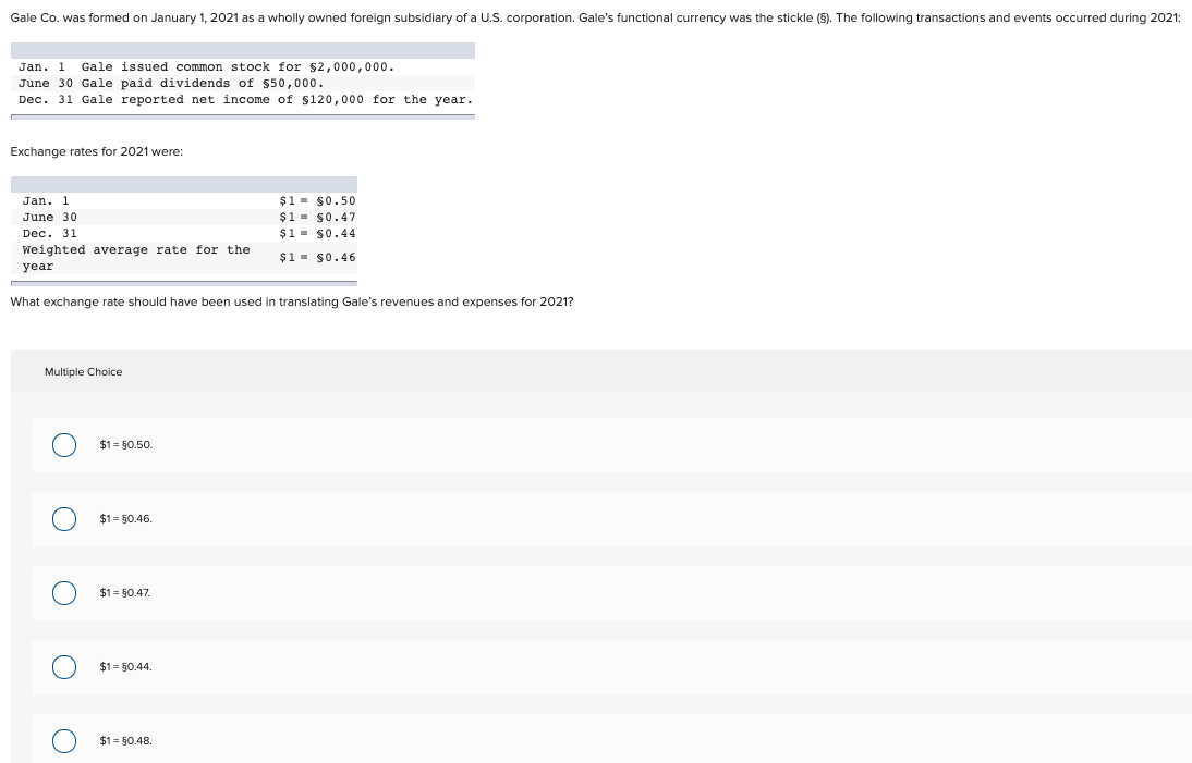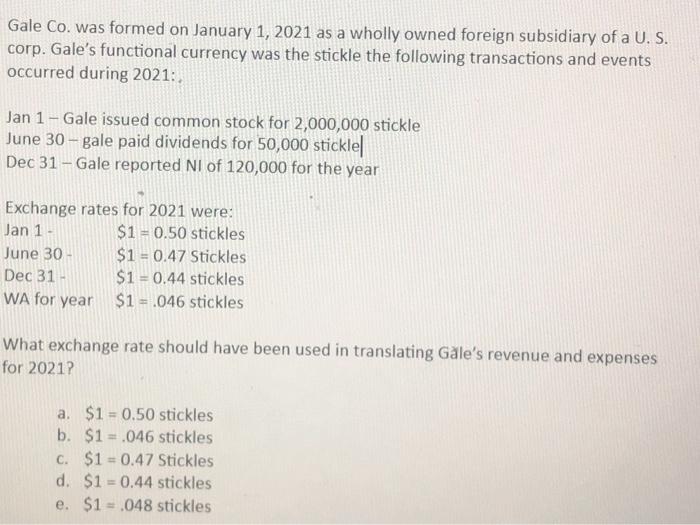 Solved Gale Co Was Formed On January 1 2021 As A Wholly Chegg Com